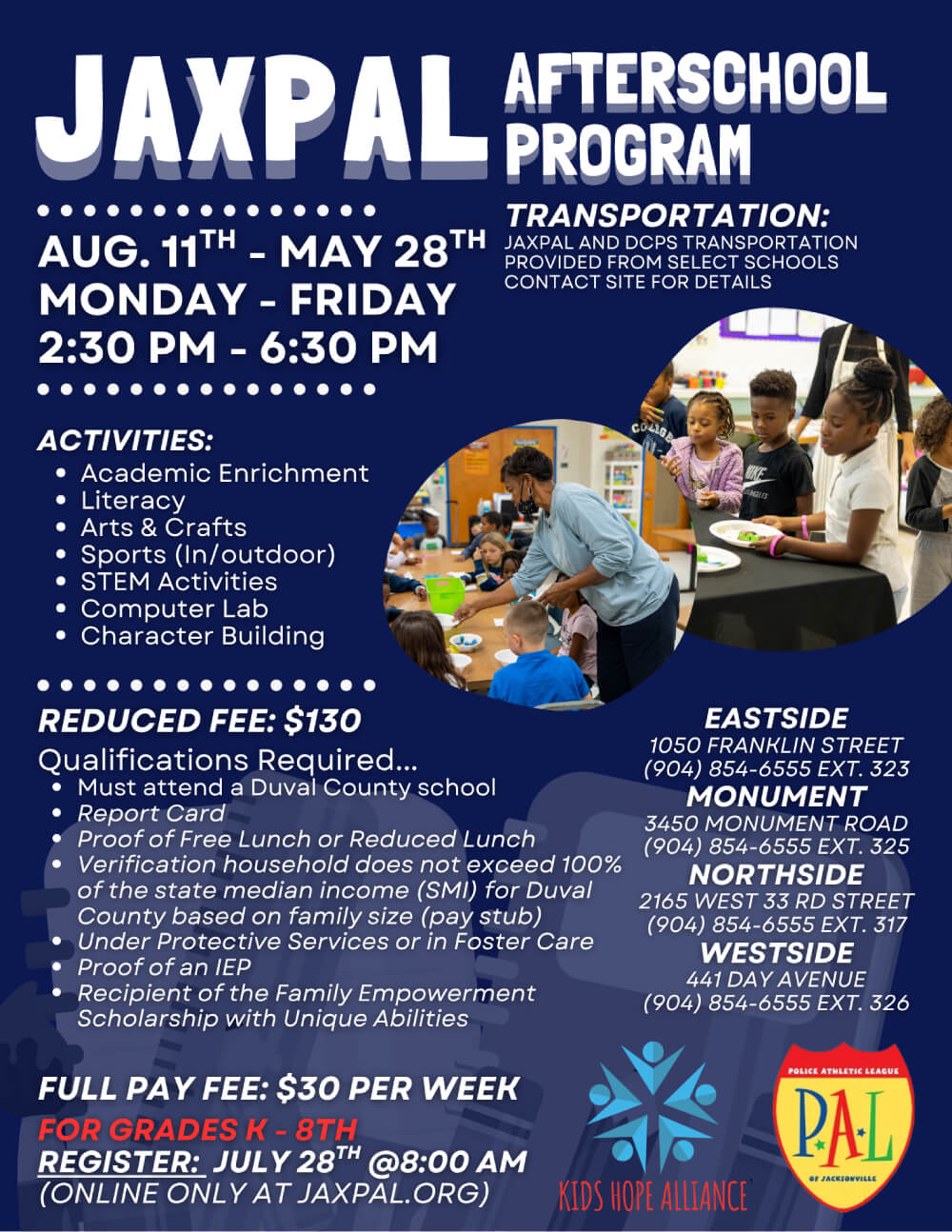 The Police Athletic League of Jacksonville (JaxPAL) is a 501(c)(3) youth-serving nonprofit that enriches the lives of children by creating positive relationships between law enforcement officers and the youth of our community through education, athletic, outreach, and teen leadership programs.